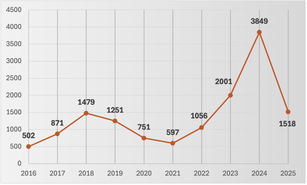 Les trois graphiques montrent une progression marquée de ma pratique cycliste, avec des hauts et des bas, mais surtout une vraie montée en puissance depuis 2022. L’année 2024 se démarque clairement comme la plus intense, avec 3849 km, 28 534 m de D+, 100 sorties et 141 heures de selle. C’est un vrai point de référence. À l’inverse, 2020-2021 étaient plus calmes pour obligation familiale 👶